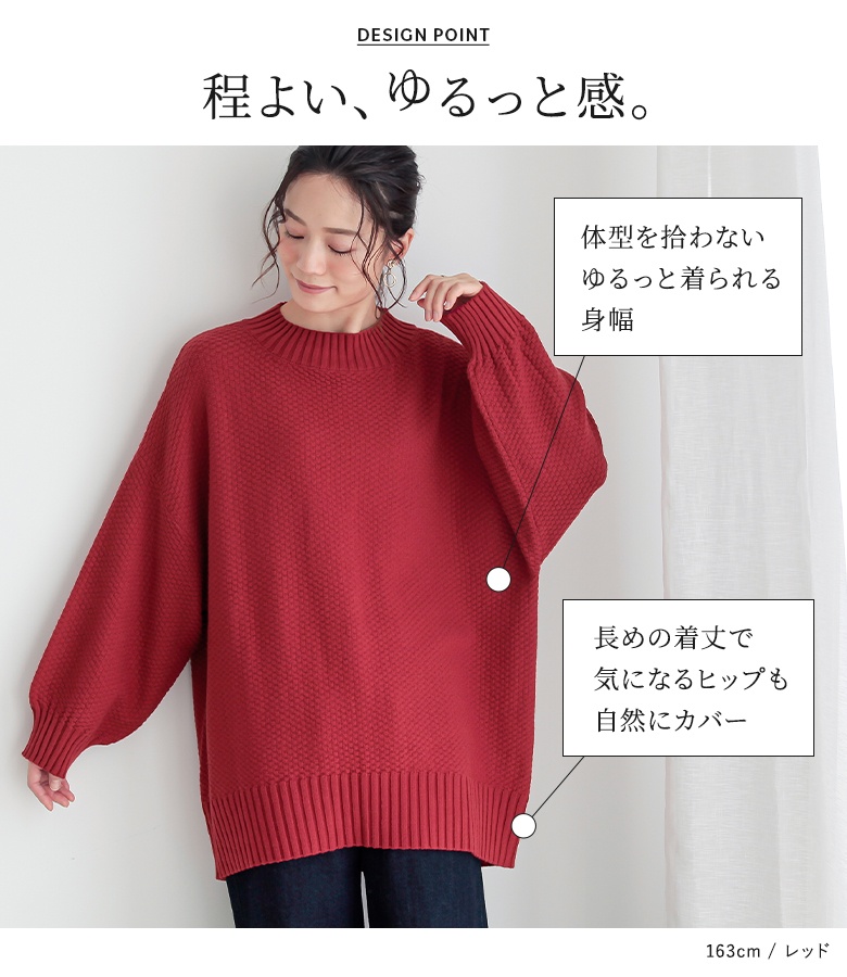 ニット ゆるっと レディース トップス セーター 鹿の子 長袖 ハイネック 送料無料 返品交換不可「メール便不可」「20」