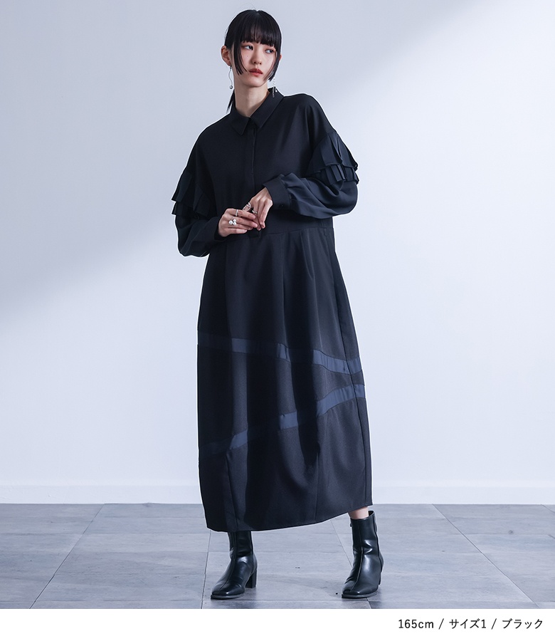ワンピース 長袖 レディース ロングワンピース コクーンシルエット 異素材 配色 シアー プリーツ オケージョン 秋 冬 春 夏 【TP】 パーティーワンピース パーティードレス オケージョンワンピース シャツワンピース シャツワンピ 襟付き ロング丈 マキシ丈 切り替え アシンメトリー アシメ 無地 異素材MIX 透け感 おうちで洗える 裏地付き オールシーズン ロングシーズン フォーマル シンプル モード キレカジ 可愛い系 大人女子 大人可愛い お洒落可愛い 大人カジュアル 上品 きれいめ ゆったり ゆる 楽ちん Sサイズ Mサイズ Lサイズ LLサイズ 3Lサイズ XLサイズ ぽっちゃり 体型カバー 大きいサイズ プラスサイズ 10代 20代 30代 40代 50代 60代 女子会 お買い物 お出掛け 旅行 おしゃれ お洒落 パーティー 二次会 結婚式 入学式 卒業式 セレモニー 謝恩会 学校行事 お宮参り 七五三 ママスーツ kOhAKU コハク ラフ スタイリッシュ 洗練 エッジィ かっこいい osharewalker オシャレウォーカー おしゃれうぉーかー ブラック 黒 occasion ツイル生地[ID]15do0pf[kOhAKU配色ラインコクーンワンピース]