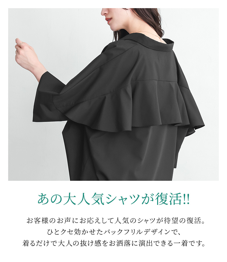 シャツ ブラウス レディース トップス 七分袖 五分袖 フリル バックフリル ドルマンシルエット 羽織 レイヤード 重ね着 春 夏「メール便可」「10」