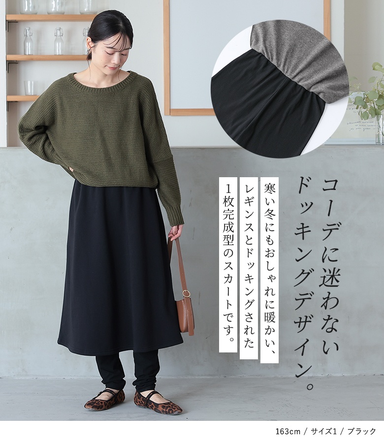 お洒落に暖かいレギンスドッキング裏起毛スカート♪