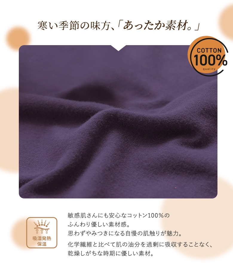 ロンT 保温 発熱 吸湿 レディース トップス インナー 長袖 あったか カットソー Tシャツ コットン100% 肌着 レイヤード 秋 冬「メール便可」「10」