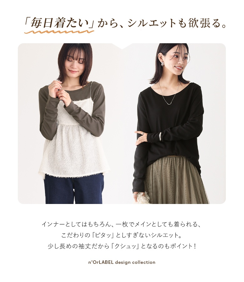 レディース トップス Tシャツ ロンT カットソー プルオーバー インナー クルーネック Uネック ラウンドネック 長袖 無地 綿100% コットン100% レイヤード 重ね着 おうちで洗える 帯電防止 保温 吸湿 発熱 抗菌 防臭 あったか 秋冬 女子会 カジュアル お買い物 お出掛け 旅行 大人女子 大人可愛い お洒落可愛い モード シンプル ナチュラル ニュアンス ラフ Mサイズ Lサイズ LLサイズ ぽっちゃり 体型カバー 大きいサイズ 10代 20代 30代 40代 50代 60代 n'OrLABEL ノア―ルレーベル オシャレウォーカーラボ オシャラボ ふわほっとん ホワイト 白 アイボリー ベージュ グレージュ パープル 紫 パープルネイビー グレー 灰色 チャコールグレー チャコール ブラック 黒 ブラウン 茶色 モカ 差し色 吸湿発熱素材 抗菌防臭 fuwahotton[ID]tkn0573[n'OrLABEL吸湿発熱ラウンドネックロンT]