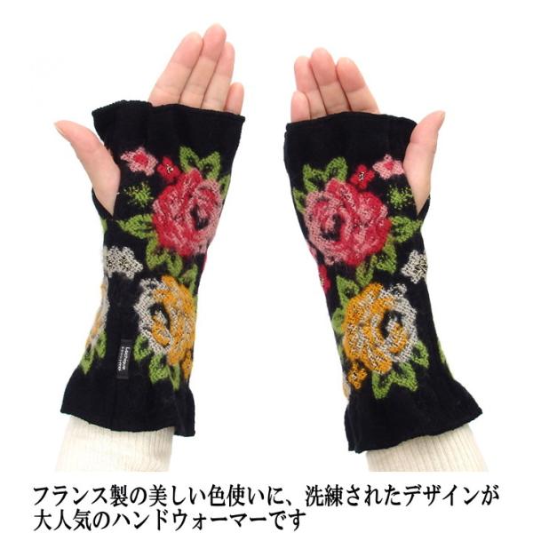 【在庫一掃★残りわずか】 ハンドウォーマー アームカバー 手袋 指なし 薔薇 バラ柄 ラシクモア フランス製 秋冬 花柄 かわいい おしゃれ ギフト 誕生日