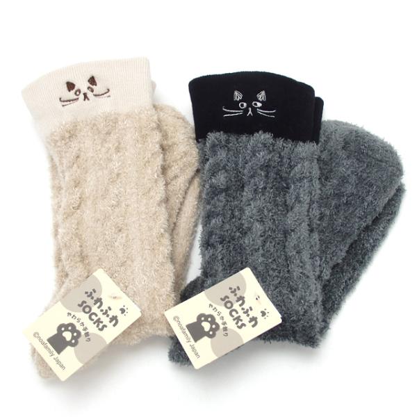 ノアファミリー 可愛い ネコ 靴下 あったか ふわふわ なめらかな