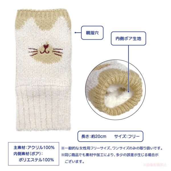 ハンドウォーマー アームウォーマー 手袋 指なし 猫 猫柄 あったか ノアファミリー 内側ボア 厚手 秋冬 裏起毛 レディース かわいい おしゃれ ギフト 爆買