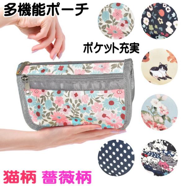 ポーチ 花柄 猫柄 水玉 ドット 小物入れ レディース化粧ポーチ コスメポーチ メイクポーチ 自立 軽量 便利 かわいい おしゃれ ギフト プレゼント 誕生日 爆買