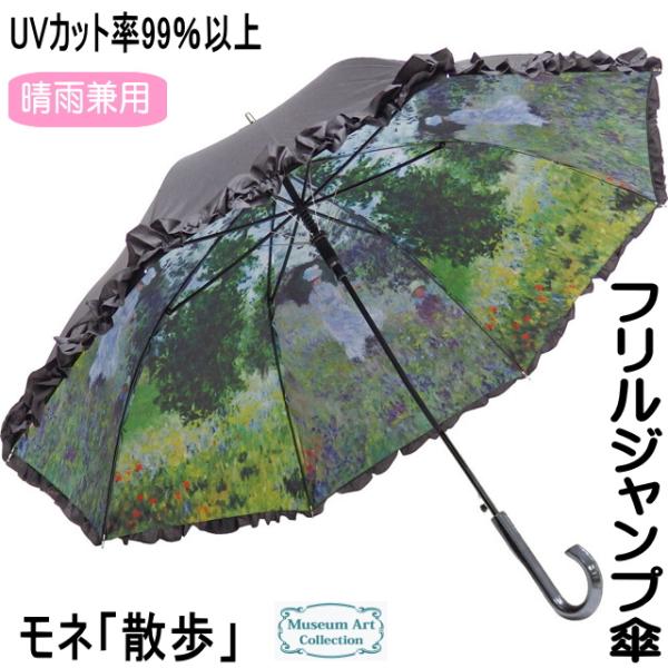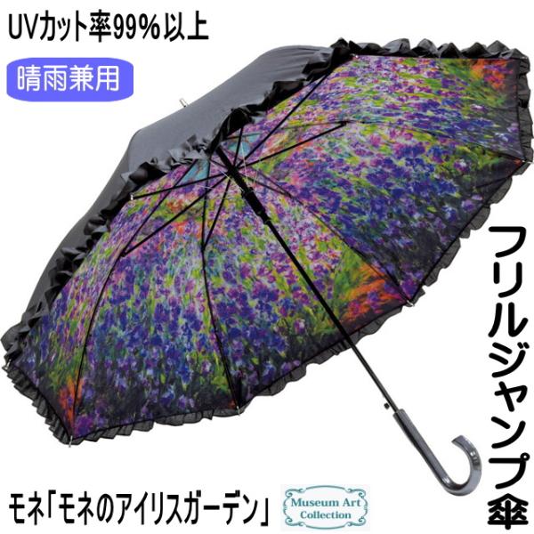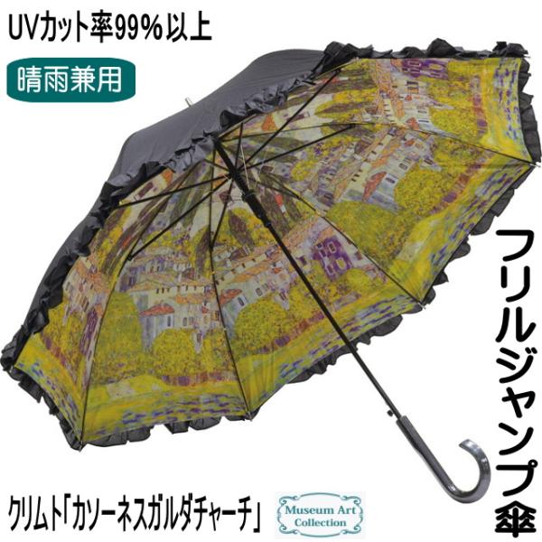 傘 晴雨兼用 クリムト カソーネスガルダチャーチ フリル 名画 長傘 ジャンプ傘 ワンタッチフリル 名画 UVカット 99%以上 誕生日 猫の日
