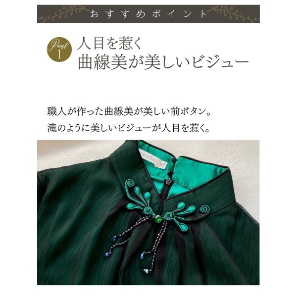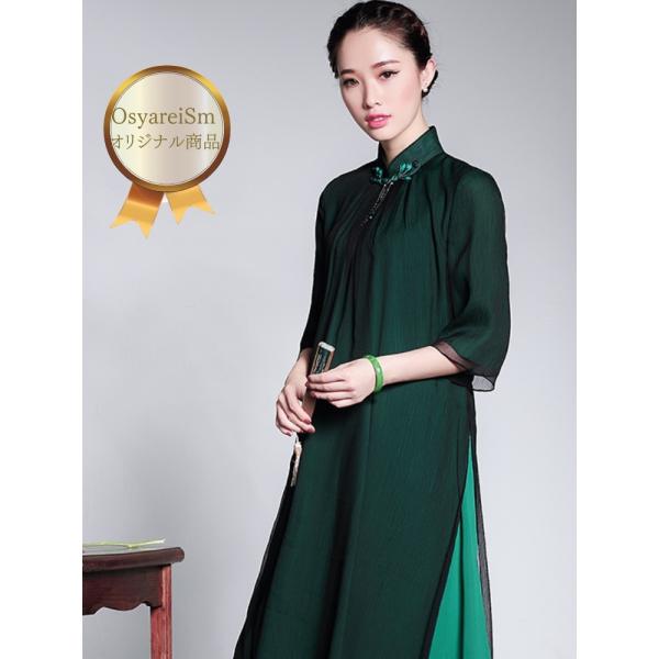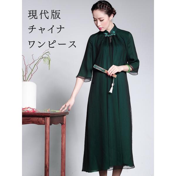 【商品特徴】 チャイナ風 ロング 袖あり 長袖 袖付き 7分 きれいめ エレガント 大人 上品 体形カバー 二の腕カバー ロング丈 ミモレ丈 高級