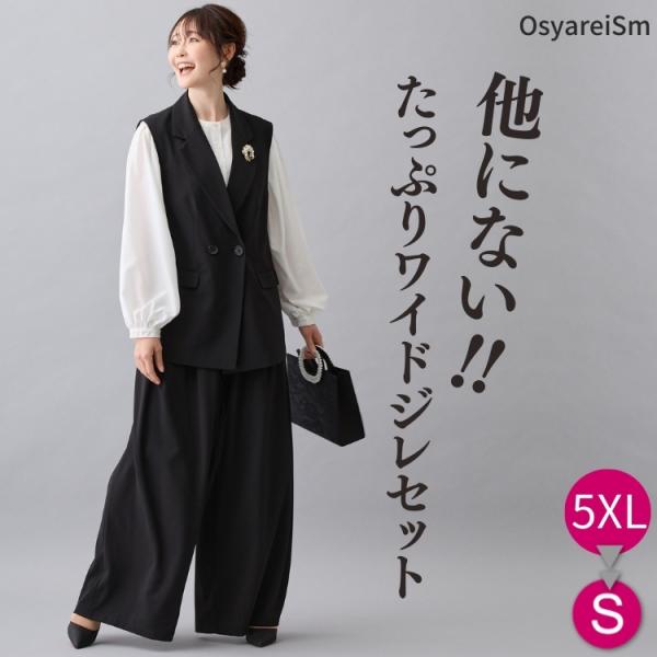 ジレ 卒業式 セットアップ ジレセットアップ スーツ 母 ママ 入学式 卒園式 入園式 パンツスーツ ぽっちゃり レディース 女性 タック ワイドパンツ 結婚式