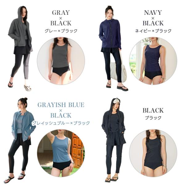 30%OFFクーポン付き 期間限定 水着レディース 体型カバー ラッシュガード uvカット タンキニ水着 5点セット タンキニ ラッシュレギンス