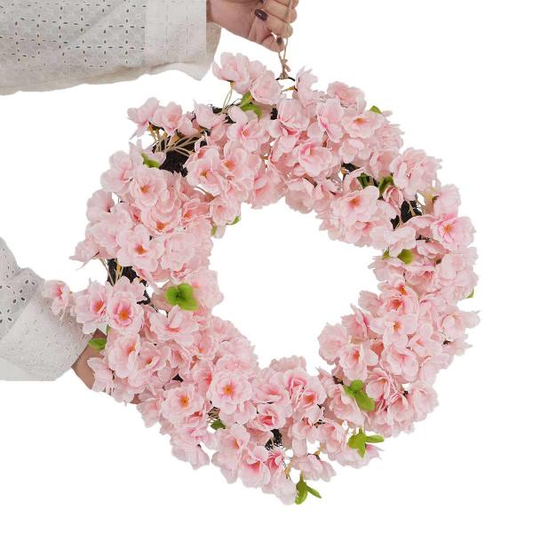 春の装飾 桜 さくら 玄関 壁掛け 飾り 造花 店舗・自宅兼用 さくらリース 1個 直径約48×奥行10cm ひも付き
