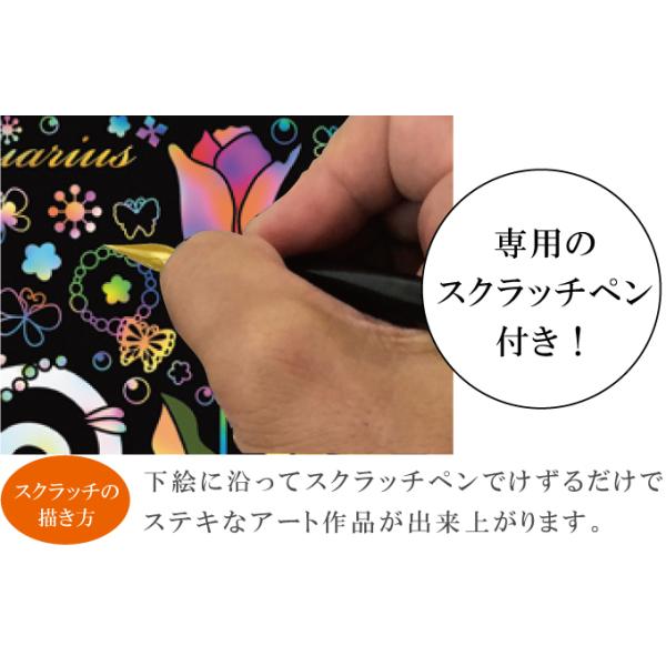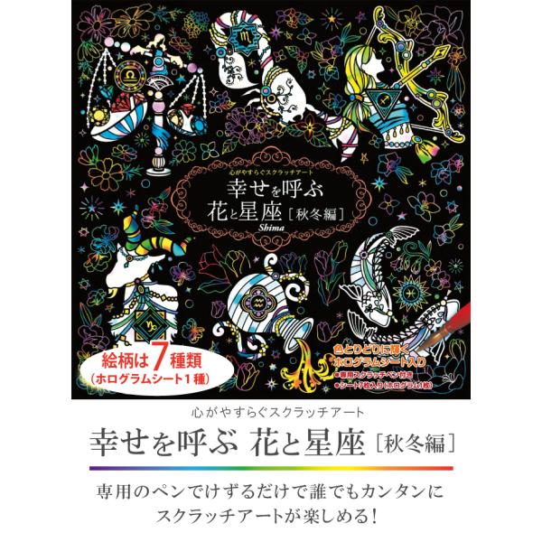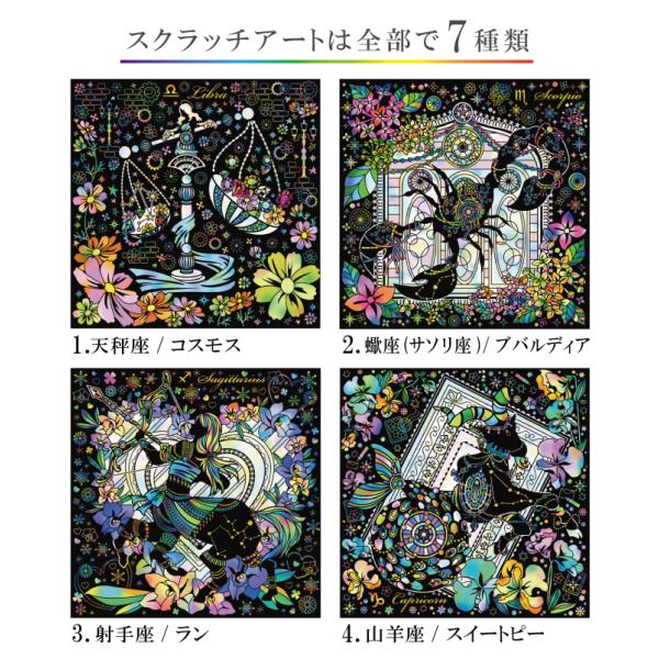 スクラッチアート 幸せを呼ぶ花と星座 秋冬編 大人の塗り絵 ホログラム仕様1枚含む計7枚入り スクラッチアートペン付