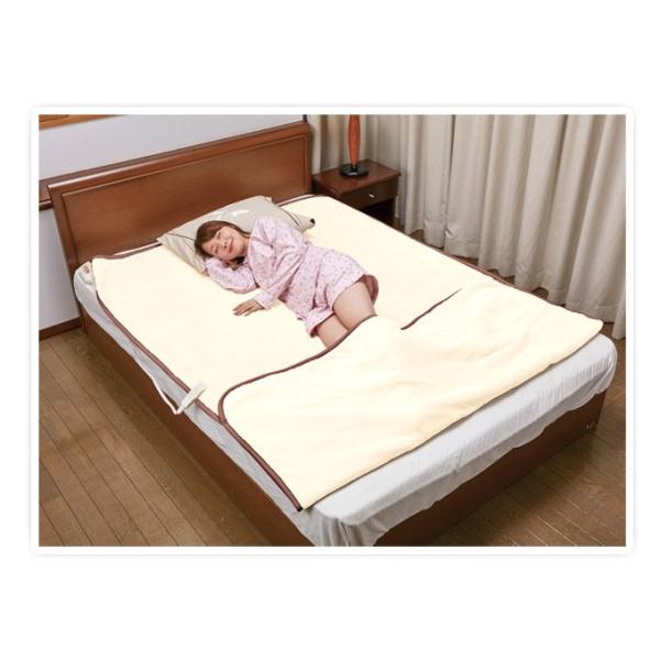 スナップを留めれば足ポケットが出来る 暖かい足入れ付電気毛布