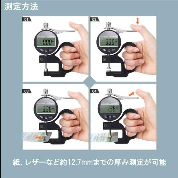デジタルシックネスゲージ 厚さ測定器 デジタル厚さ測定器 精度0.01mm 測定範囲0~12.7mm アルミ合金製 LCD大型液晶画面