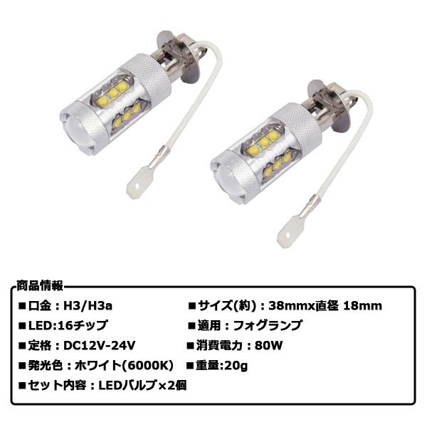 LED フォグランプ H3 H3a ショートバルブ 2個 セット 白 ホワイト 12V 24V 80W 6000K デイライト カスタム パーツ カー用品 LEDバルブ フォグ