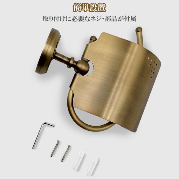 トイレットペーパーホルダー 真鍮製 壁掛け アンティーク風 カバー付き