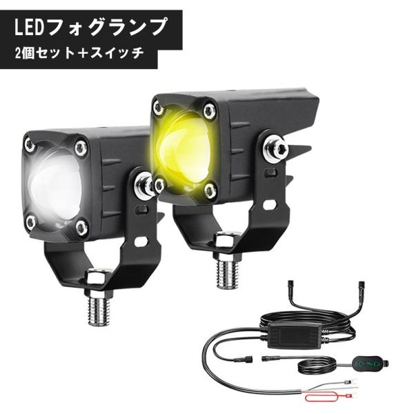 バイク 汎用 LED フォグランプ 2色切替 ホワイト イエロー スイッチ 小型 12V 2個セット 防水 カットライン 10W