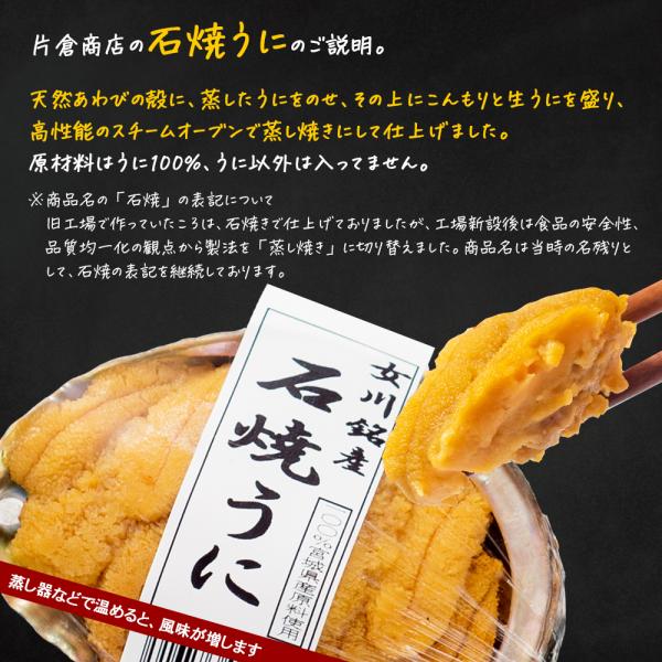 内 容:塩うに55g×1個、石焼うに60g×1個