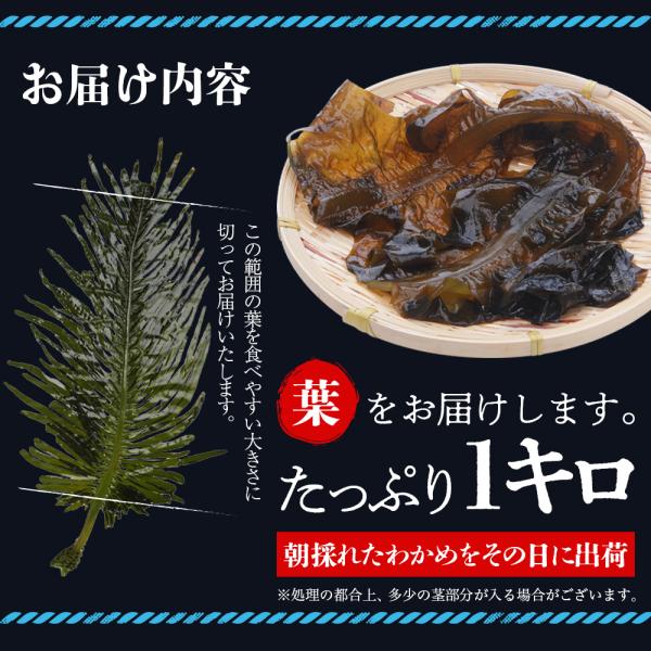 ぶつ切り簡易梱包により、お得な価格で朝採れた生わかめを、食べやすい葉の部分のみをご提供いたします。
