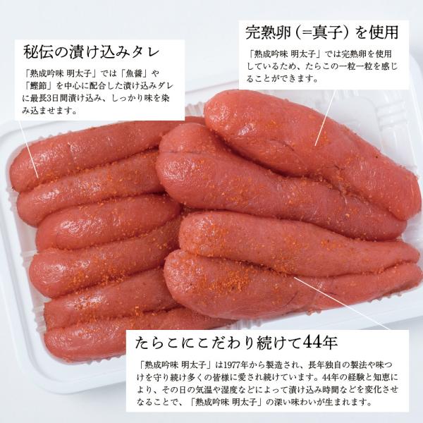 完熟卵を使用し、一粒一粒の弾力と深い味わいが特徴の明太子をお楽しみください。