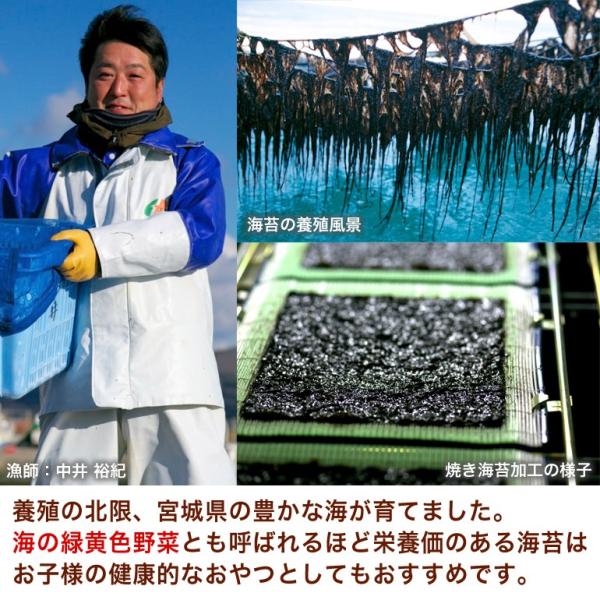 宮城県石巻産の海苔100%を使用した6種類の味付け海苔です。
