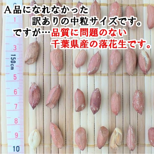 小さめの中粒を使用しており品種もミックスとなっておりますので訳ありとしての価格となっております。落花生はすべて千葉県産