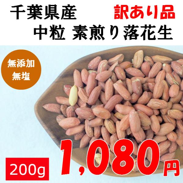 千葉県産 素煎り落花生 中粒 200g 無塩 お得用 薄皮付き ピーナッツ チャック付き袋 国産 無添加 お試し メール便送料無料