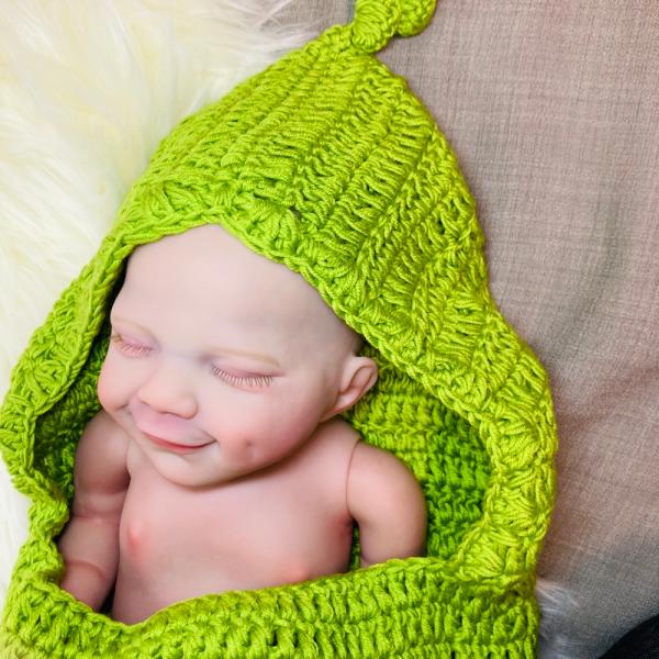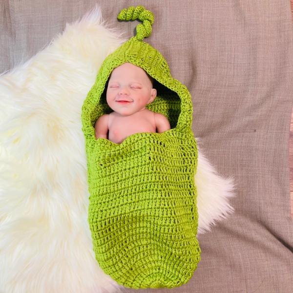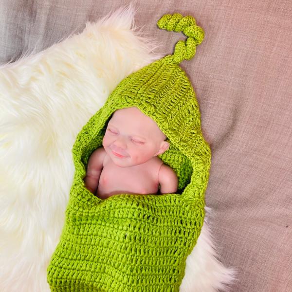 特徴:ニューボンフォト用の商品です。【さやいんげん】をモチーフにでおうちで簡単に生まれたての赤ちゃんを撮れます