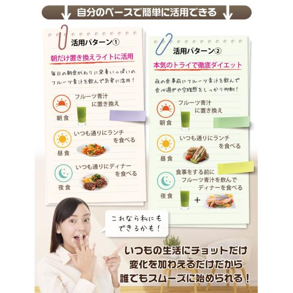 フルーツ味で青汁の飲みにくい臭みなどを抑え飲み続けやすいお味に仕上がっています。