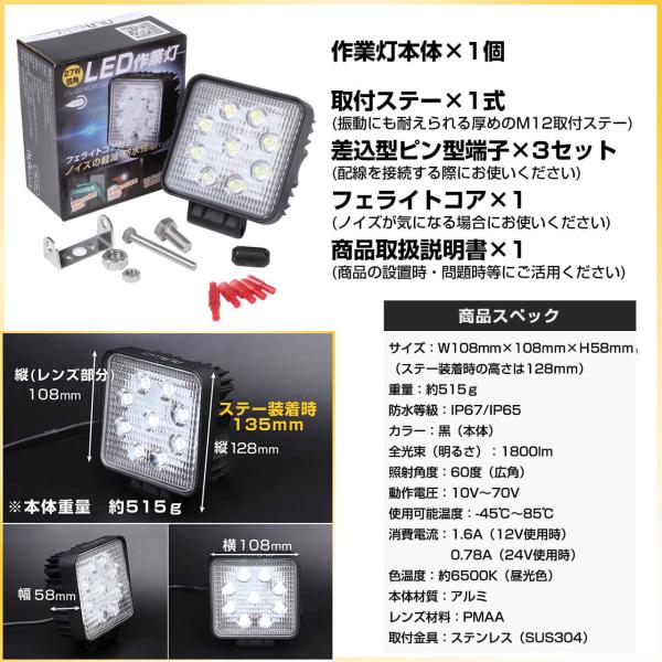 作業灯 led 27w ワークライト 12ボルト 屋内外対応