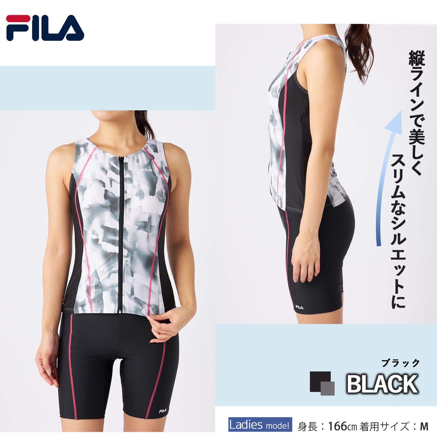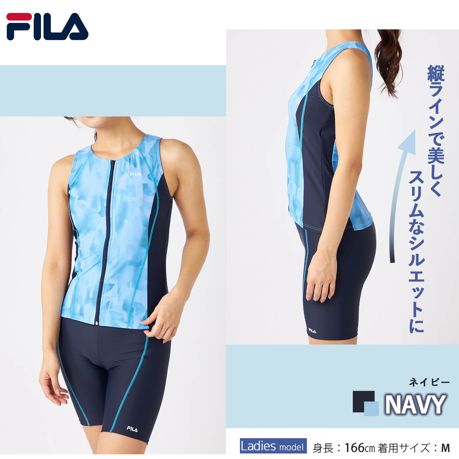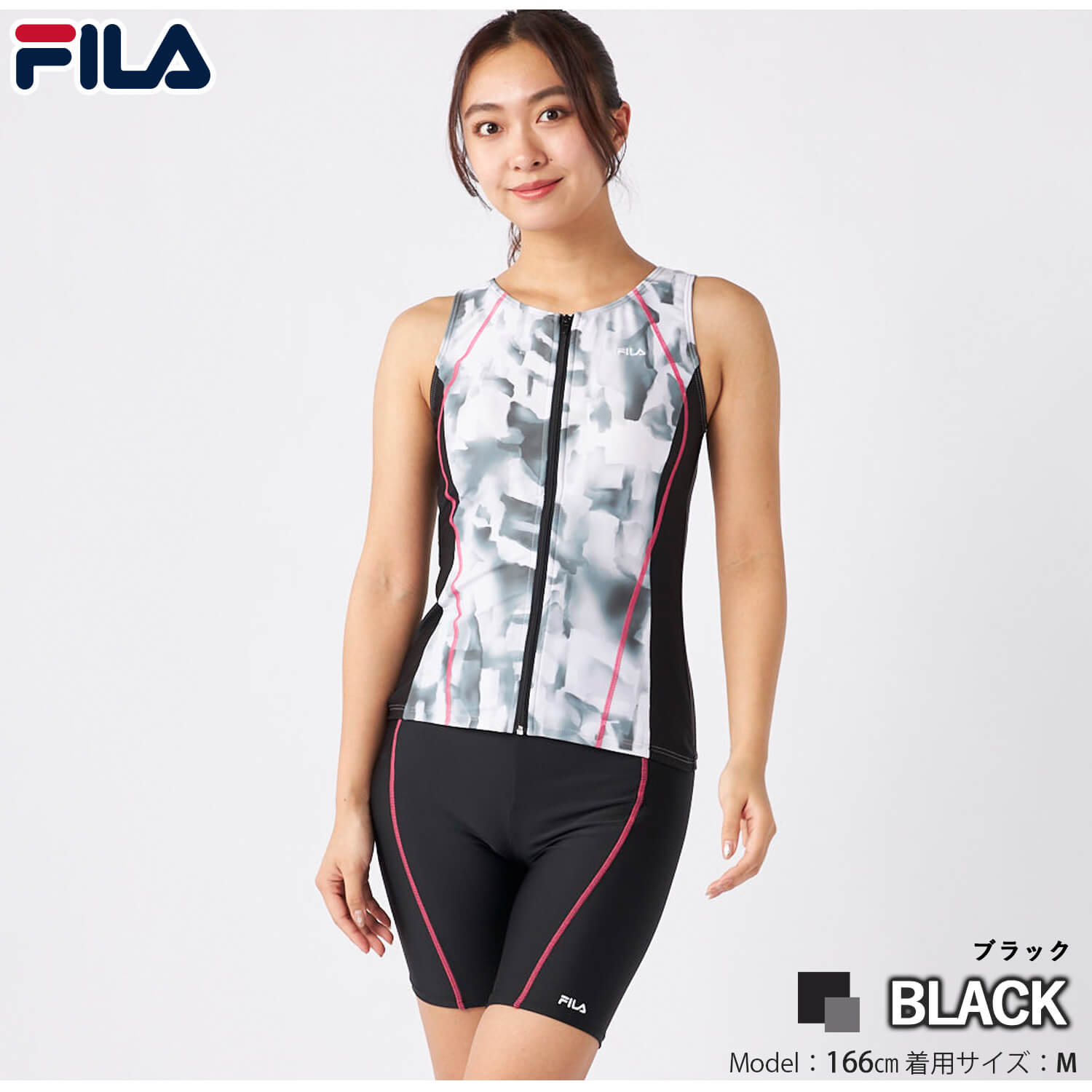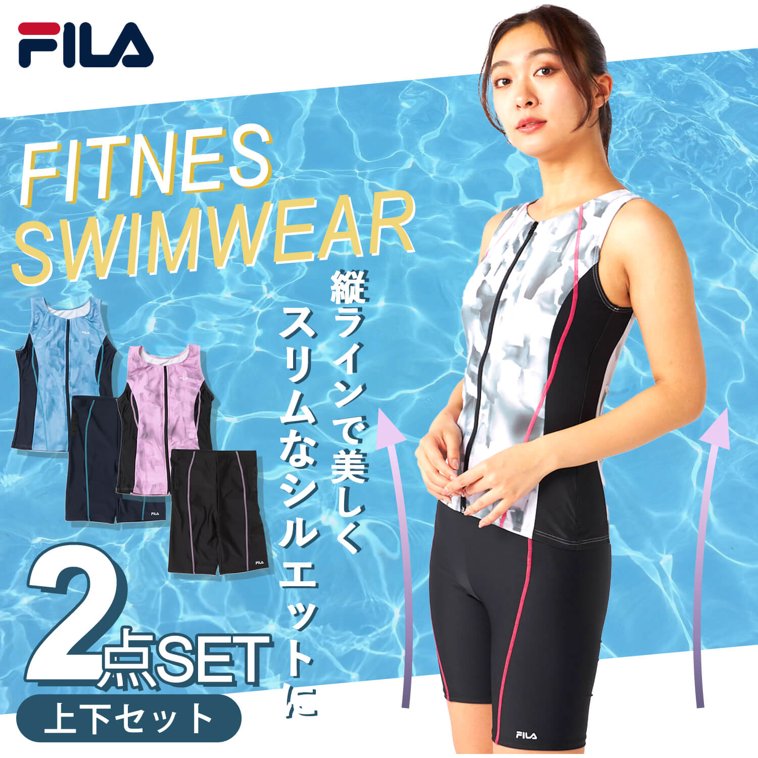 特価 FILAフィラ フィットネス水着 レディース 水泳 タイダイプリント ジップセパレート めくれ防止スナップ付き 上下セット 体型カバー