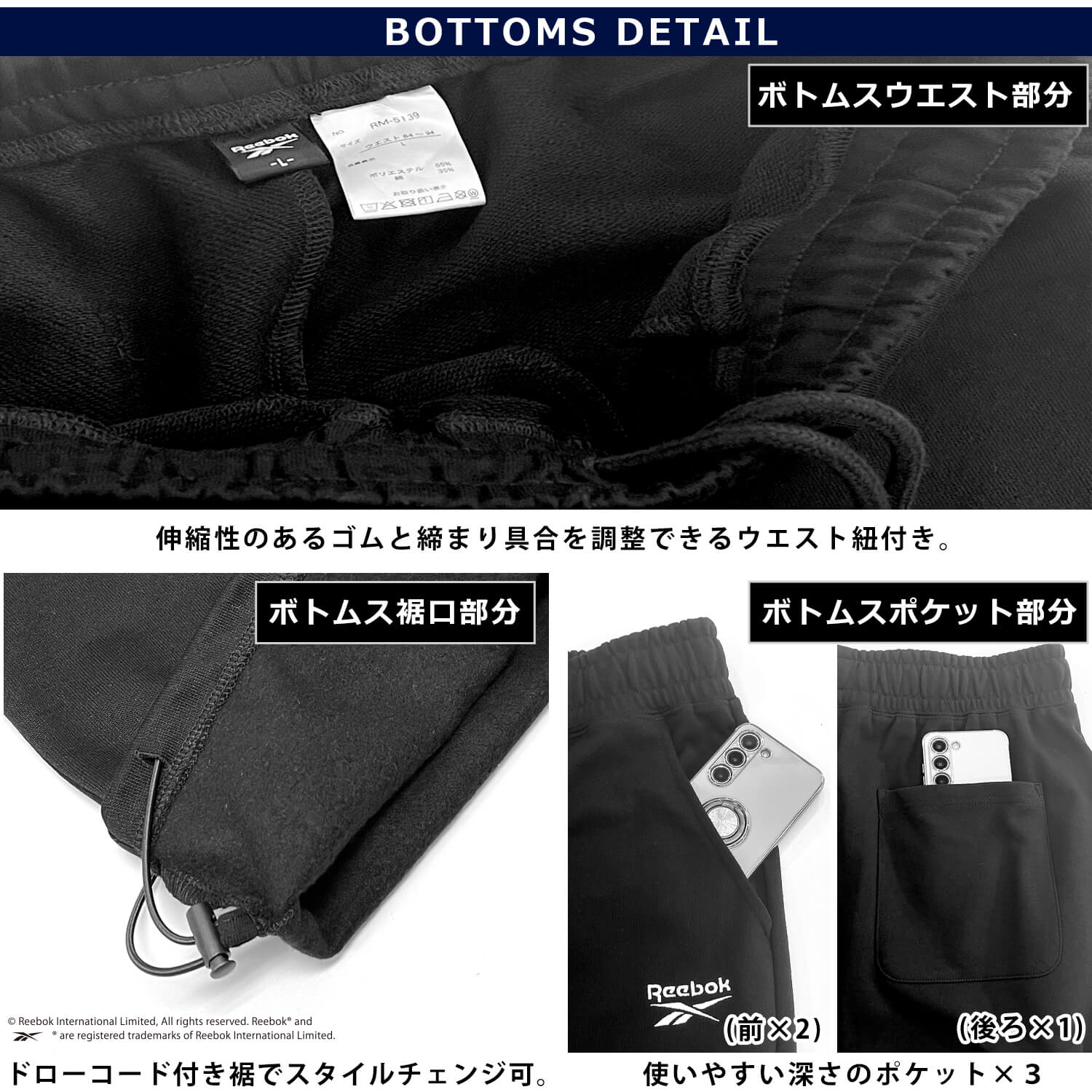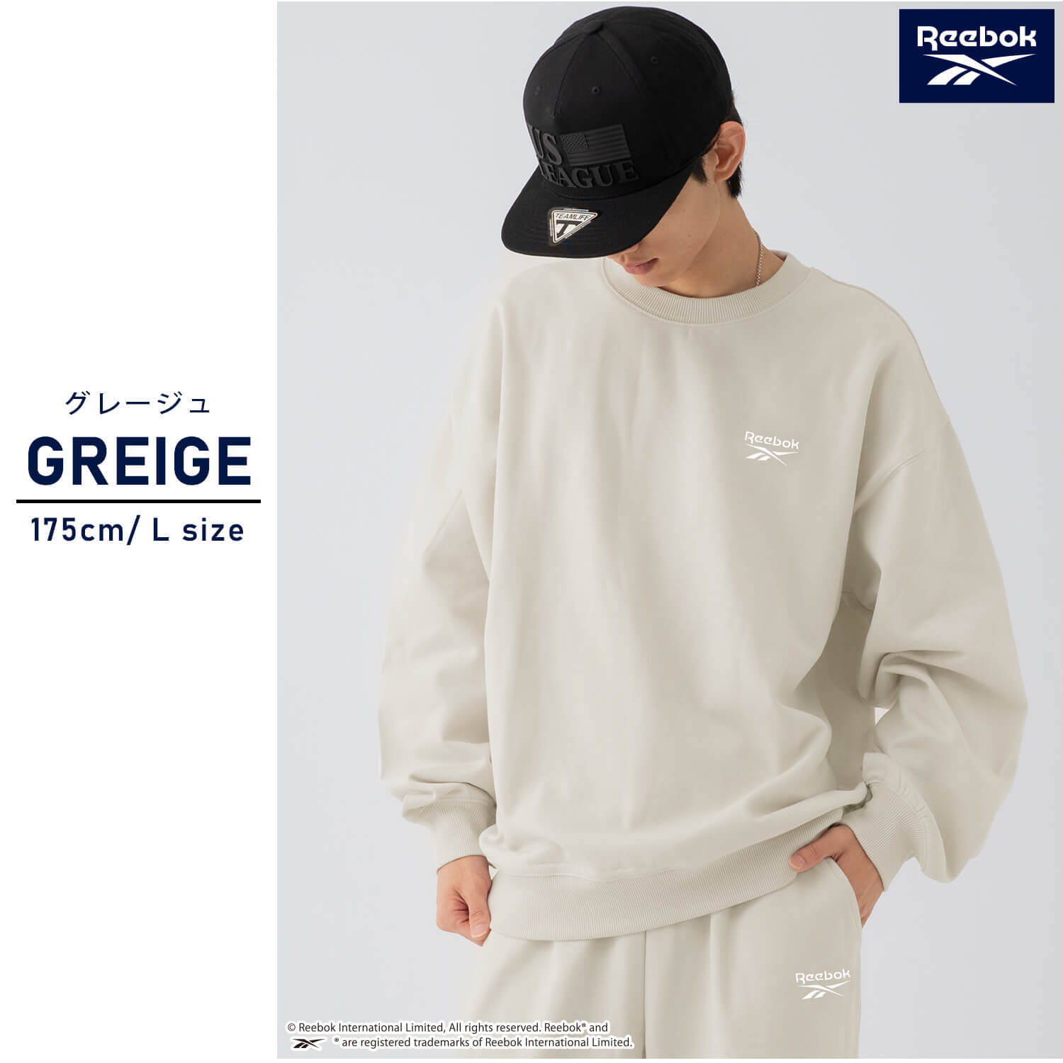 胸元のReebokロゴ刺繍がアクセントになり、ブランドの存在感をしっかりと主張してくれます。