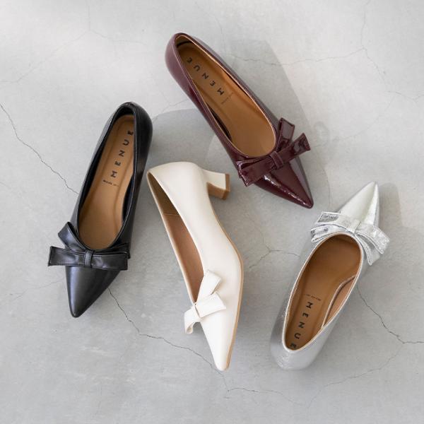 パンプス 走れる 履きやすい 走れるパンプス レディース ポインテッドトゥ ポインテッド とんがりトゥ リボン リボンコア デザインヒール 変形ヒール 巻きヒール 高反発クッション 高反発 クッション すべりにくい 痛くない 歩きやすい 疲れない 疲れにくい 大きいサイズ 小さいサイズ カジュアル旅行 トラベル 帰省 旅行 デート おでかけ お出かけ カフェ ショッピング 買い物 お呼ばれ パーティ パーティー フォーマル 冠婚葬祭 結婚式 参観 卒園式 卒業式 二次会 入園式 入学式 発表会 披露宴 デイリー 日常 普段使い 日常使い 普通履き 4cmヒール 4センチヒール ミドルヒール 2E 白 ホワイト 黒 ブラック 銀 シルバー レッド 赤 21.5cm 22cm 22.5cm 23cm 23.5cm 24cm 24.5cm 25cm 25.5cm 26cm 春 夏 秋 冬 スムース調 合皮 PU menue メヌエ outletshoes アウトレットシューズ welleg ウェレッグ