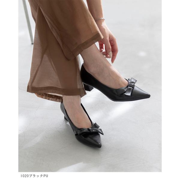 パンプス 走れる 痛くない レディース 4センチヒール 歩きやすい ポインテッドトゥ リボン 結婚式 オケージョン 送料無料