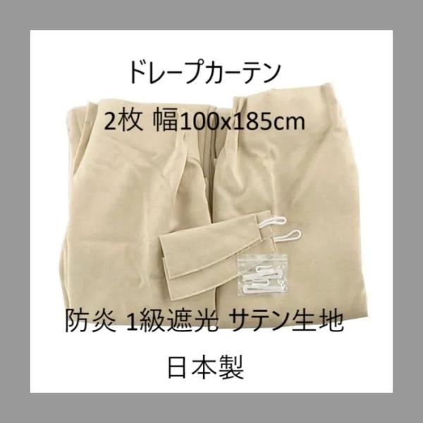 ドレープカーテン 防炎 1級遮光 サテン生地 日本製 2枚 幅100x185cm アイボリークリーム