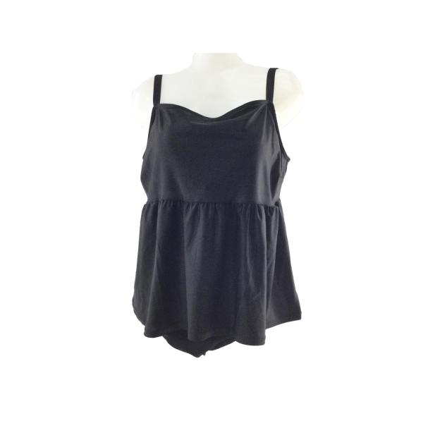 フレアのタンキニはお腹を自然にカバー。上下別で着替えやすく、カップ交換も可能。