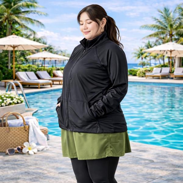 レディース水着 5点セット ラッシュガード 指穴付き レギンス パンツ付き 大きいサイズ 4L ブラック