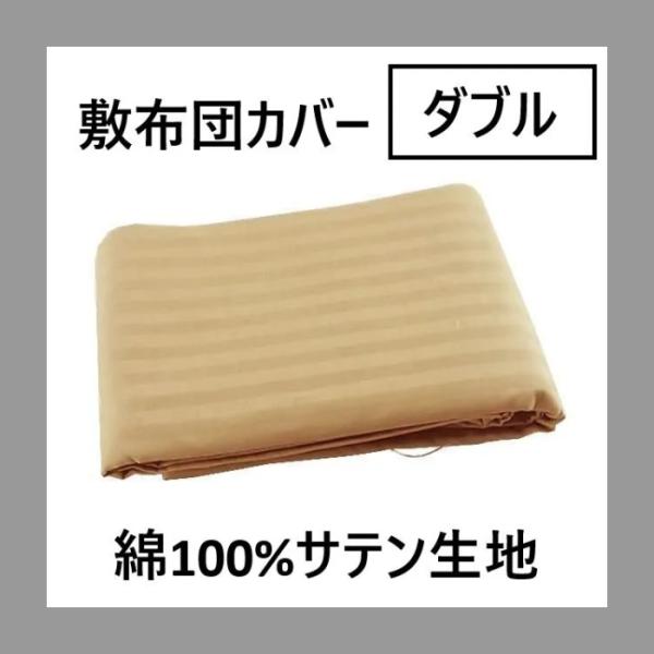 敷布団カバー 綿100% サテン生地 高密度織り ダブル 幅145x215cm ストライプ柄 ベージュ