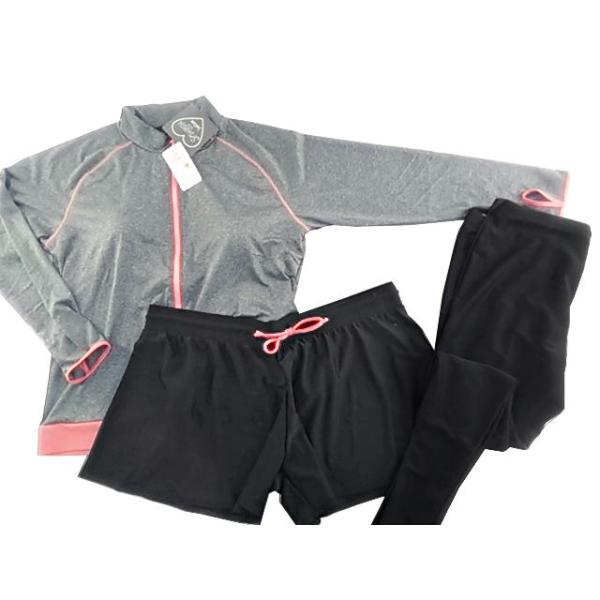レディース水着 3点セット 長袖 10分丈レギンス フレアパンツ フィットネス 体型カバー M 杢チャコール