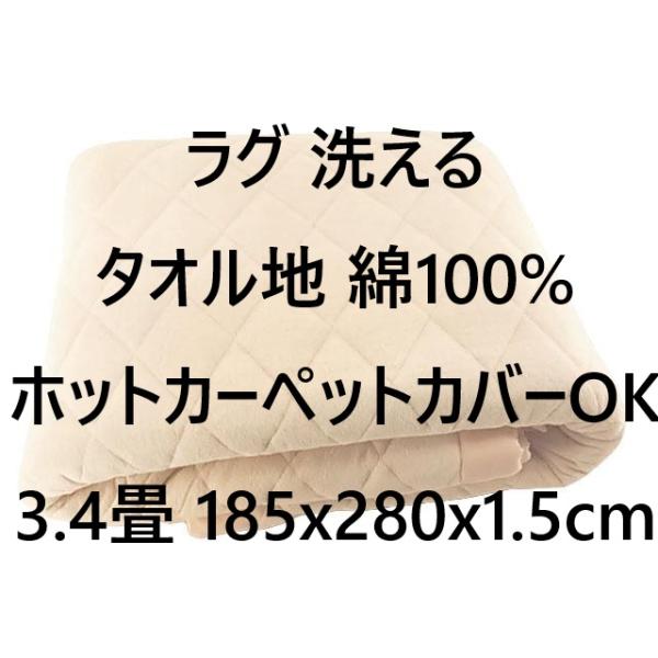 ラグ 洗える タオル地 パイル 綿100% ホットカーペットカバーOK 防ダニ 抗菌防臭 3.4畳 185x280x1.5cm アイボリー