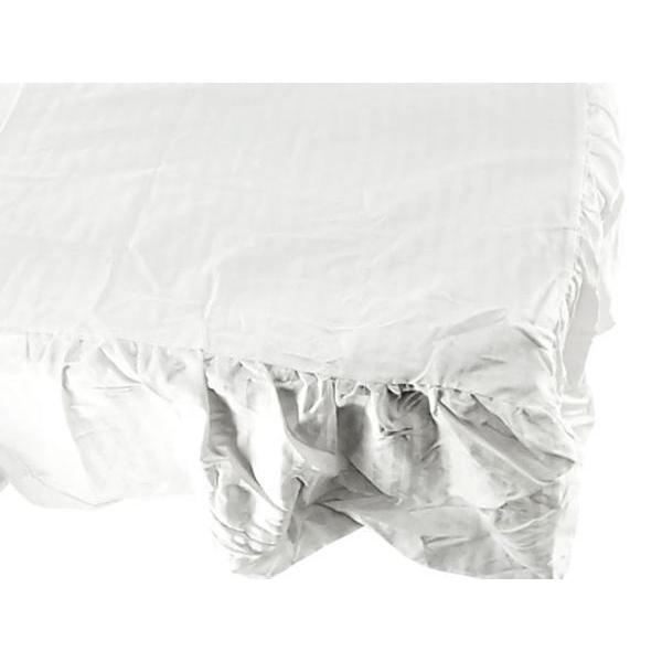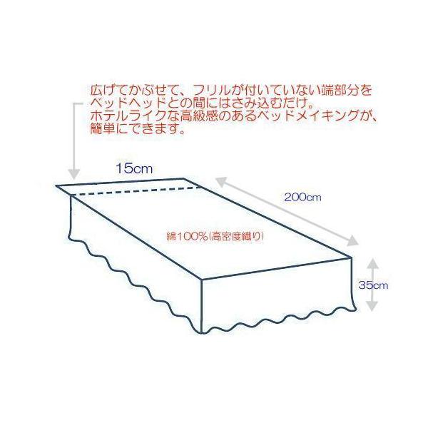 広げてかぶせて、フリルがついていない端部分をベッドヘッドとの間にはさみ込むだけで高級感あるベッドメイキングが簡単にできます。
