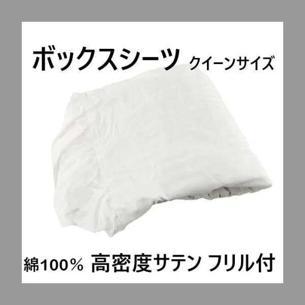 ボックスシーツ フリル付き 綿100% サテン 高密度 ホテル感覚 置くだけ簡単設置 クイーン 幅160x200x35cm ストライプ柄 ホワイト