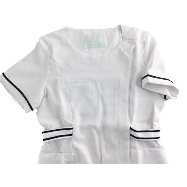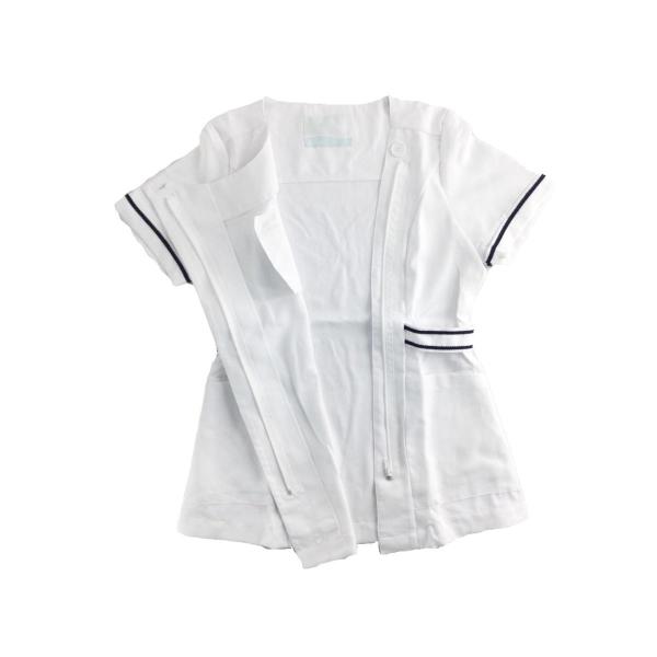 ノーカラージャケット シルキードライギャバ テープ配色 LL ホワイトxネイビー 送料250円