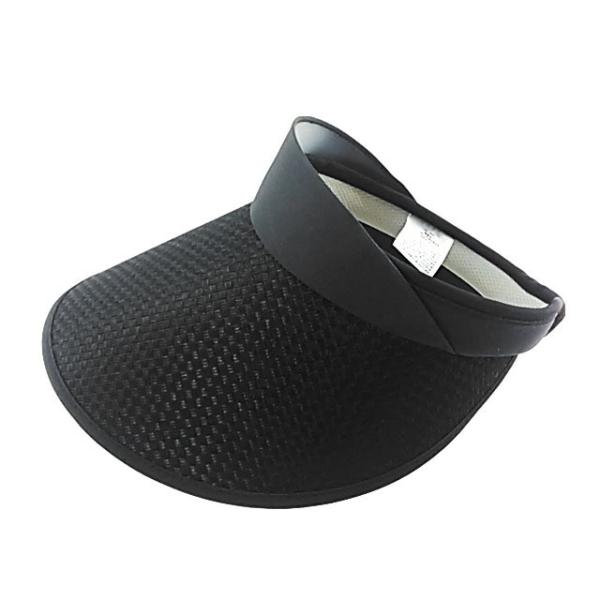 UVバイザー クリップ式 つば広 格子調生地 ブラック