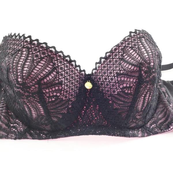 ブラジャー 敏感な大人の肌を守る なめらかタッチ 脇背中すっきり 大きいサイズ C80 ブラックxピンク 送料250円
