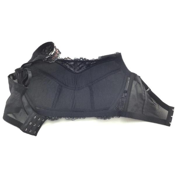 カップの高さを抑え、レースと不織布の間にパワーネットを入れて胸をおさえ、グラマーバストを小さく見せます。