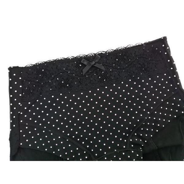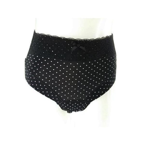 体になじみ履きやすい綿混ストレッチ素材にドット柄と配色レースがアクセントのキュートなサニタリー♪