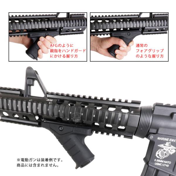 AFGと同じ様に親指をハンドガードにかけるスタイルです。