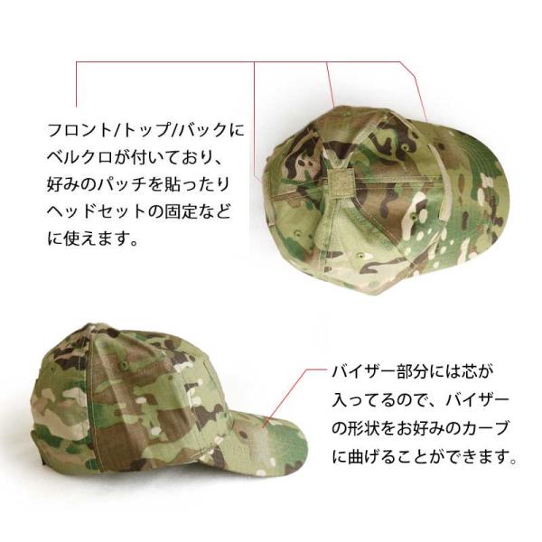 前/後/トップの3箇所にベルクロが配置されていて、様々なベルクロ仕様のワッペンやIRパッチを簡単に貼る事が出来ます。