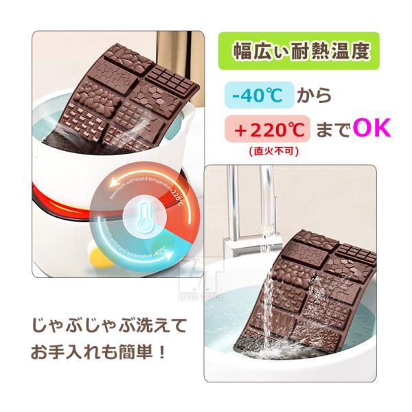 100%食品用シリコン(FDA/LFGB)で安全、お手入れ簡単!調理用としてチョコレートやゼリー、ムース、プリン、ブラウニー、ミニケーキ氷などが作れます。